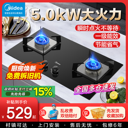美的燃气灶天然液化煤气灶双灶家用台式嵌入式官方旗舰店猛火炉灶