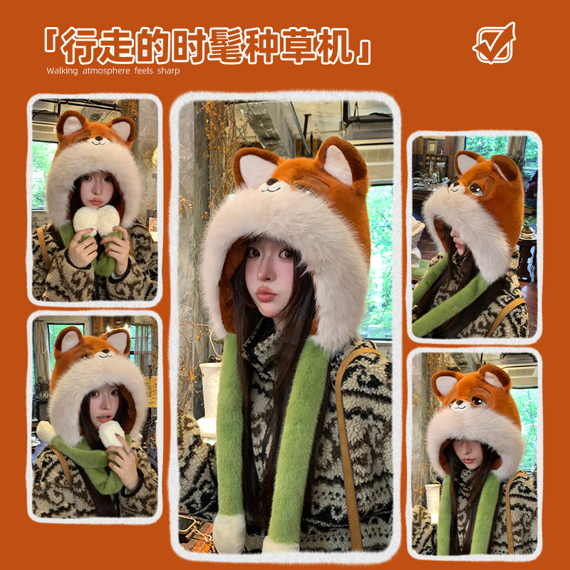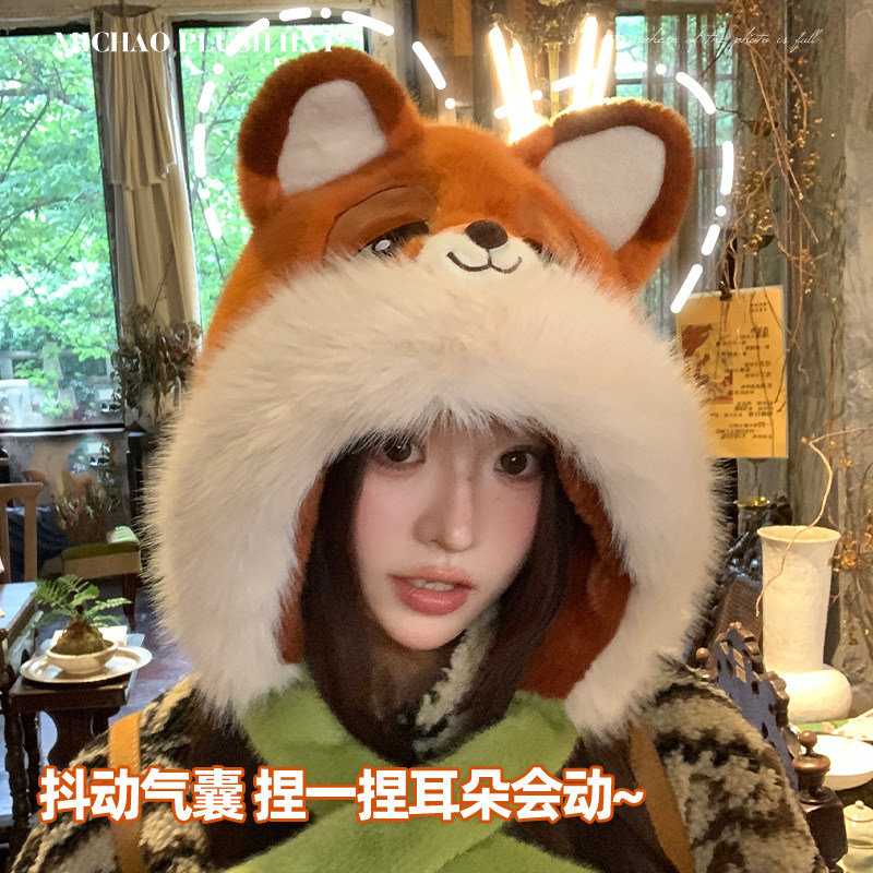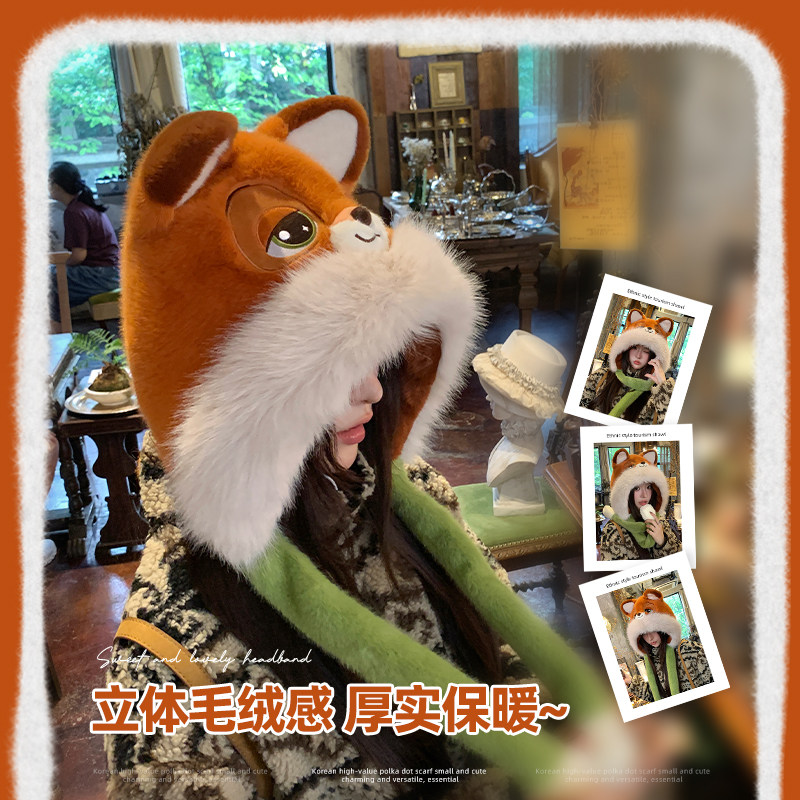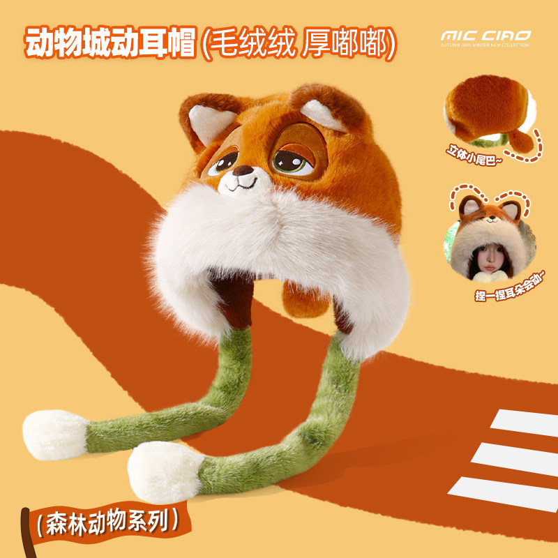 迪士尼火狐狸尼克毛绒帽女冬季可爱耳朵会动帽子史迪仔保暖护耳帽