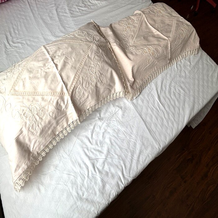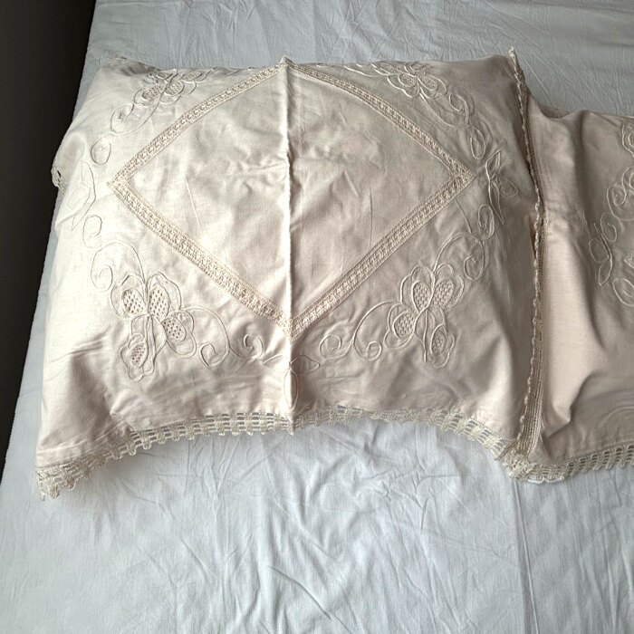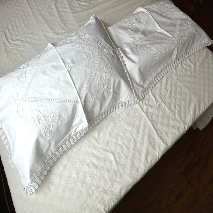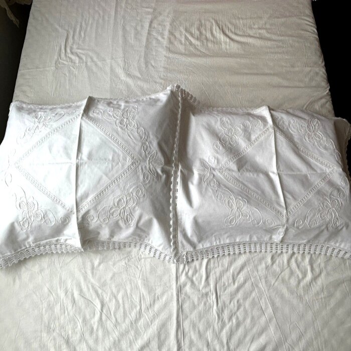 2色100%棉绣花枕套外单镂空盘带枕袋枕皮