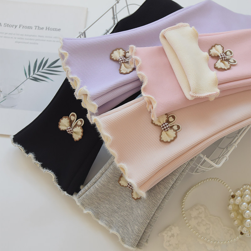 女童打底裤秋冬款宝宝微喇叭裤小童长裤子薄绒冬装大儿童加厚加绒