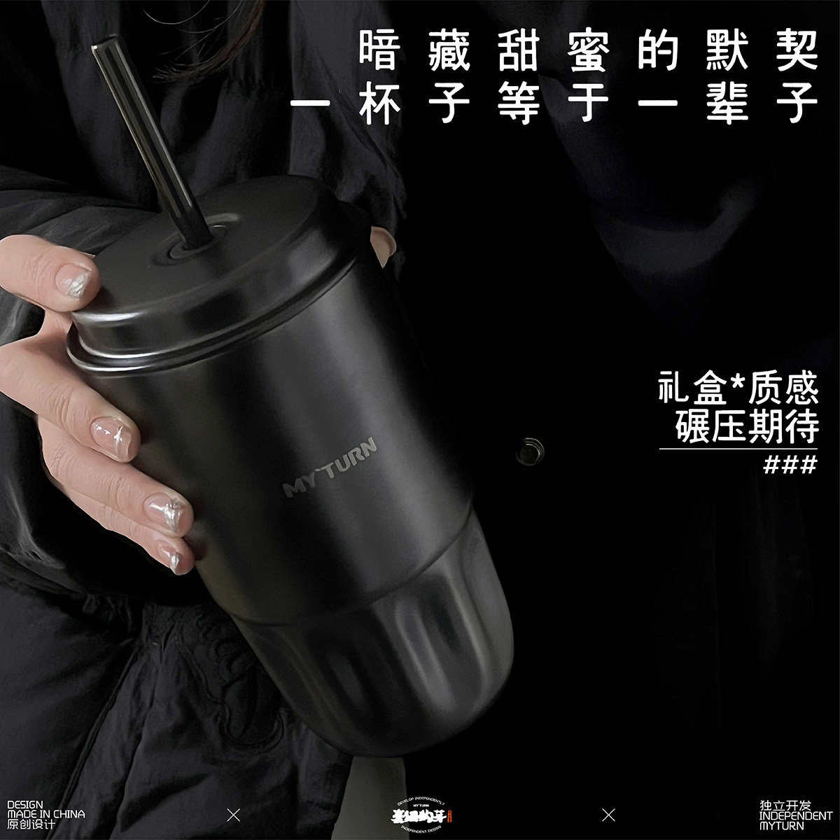 麦田的芽直饮吸管杯保温杯咖啡杯不锈钢车载杯子便携随行颜值水杯