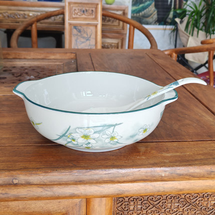 水仙花釉下彩双耳酸菜鱼碗陶瓷