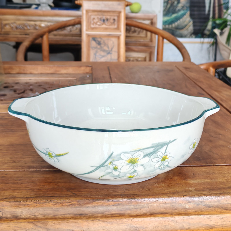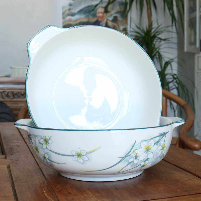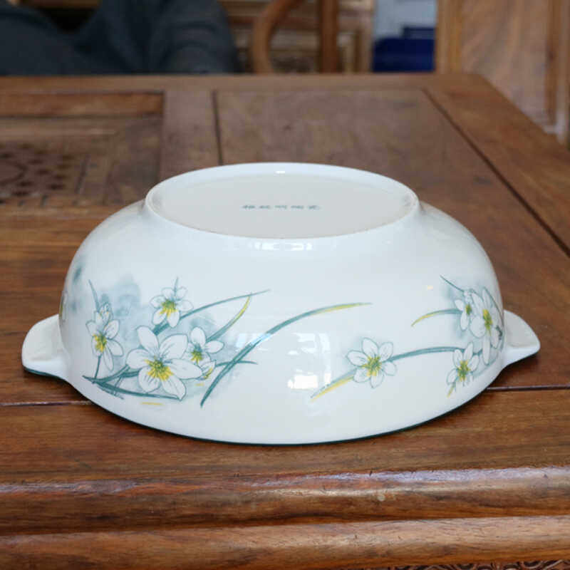 釉下彩陶瓷双耳大汤盆陶瓷家用防烫手汤碗水仙花陶瓷大碗酸菜鱼碗