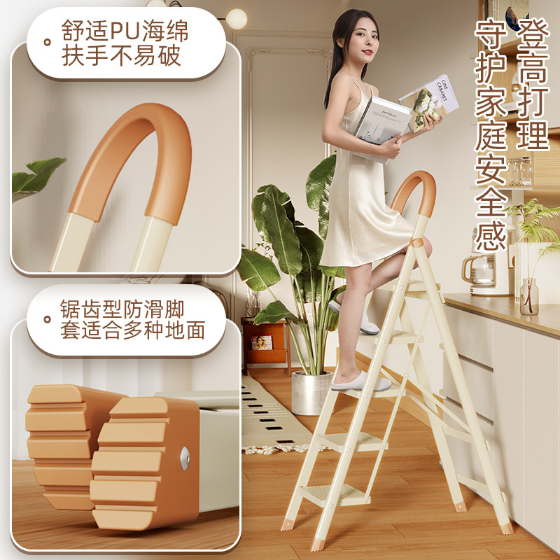 奥鹏奶油梯子折叠梯加厚伸缩两用小楼梯室内四步人字梯多功能爬梯