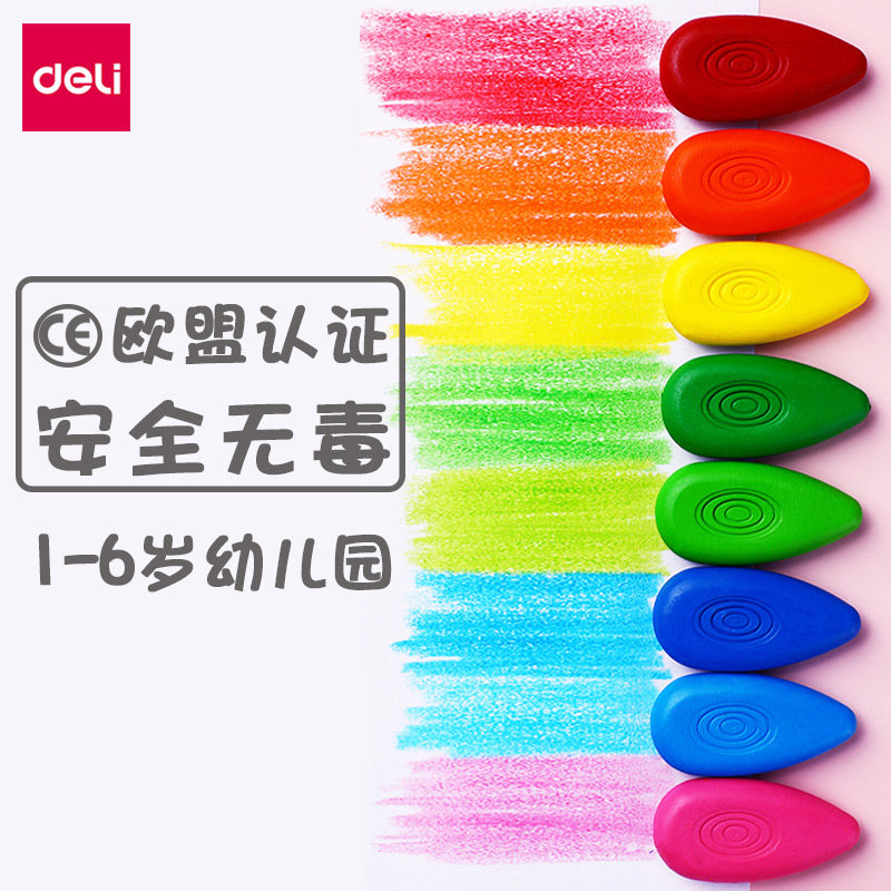 得力儿童水滴蜡笔不脏手可水洗安全无毒油画棒幼儿园塑料彩笔宝宝24色水彩笔画画彩色幼儿画笔不沾手不掉色套