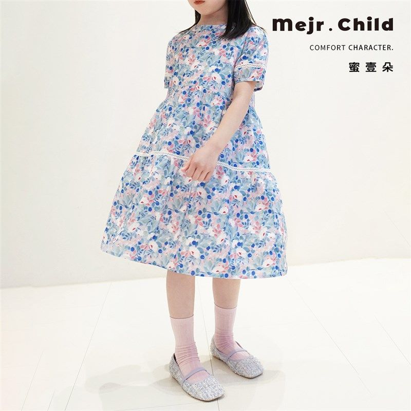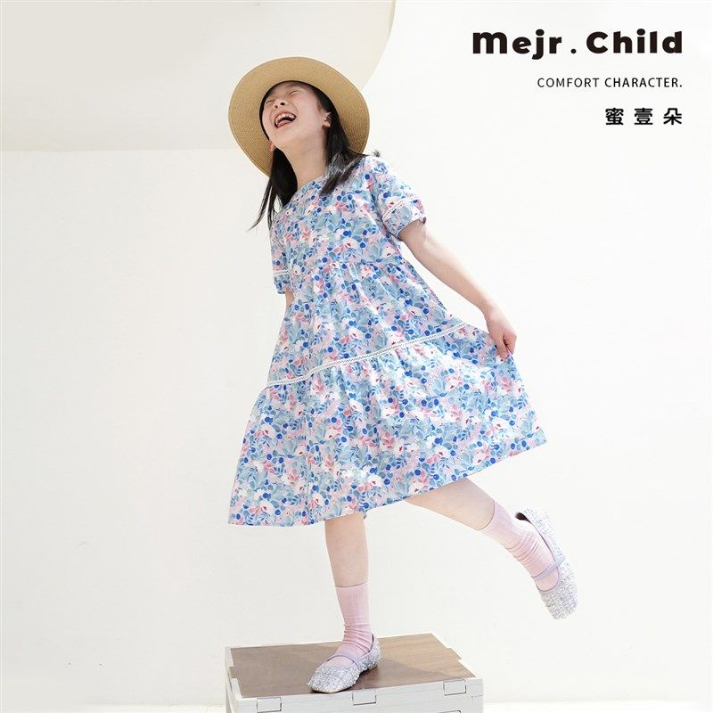 蜜壹朵25年春夏女童水墨印花法式中长款连衣裙甜美公主礼服裙