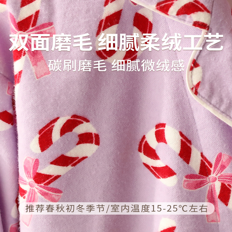 2025新款高级感纯棉翻领红条纹女士睡衣套装舒适保暖家居服可外穿