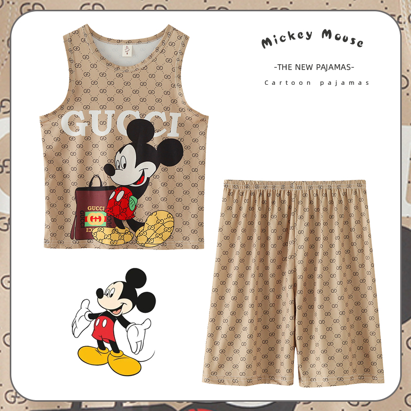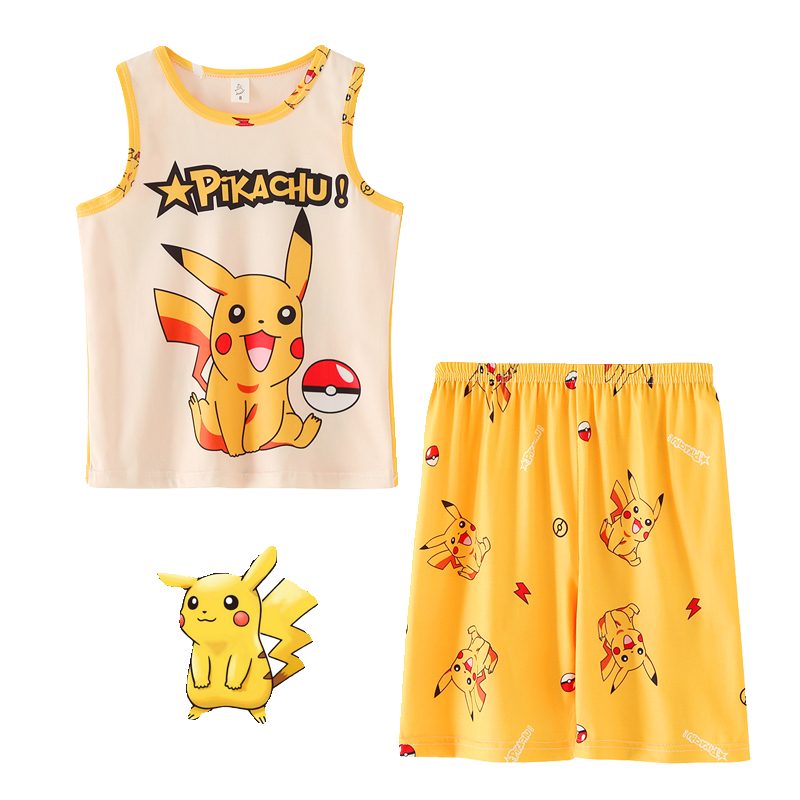 夏季儿童睡衣短袖男童女孩卡通无袖背心套装薄款男孩女童家居服棉