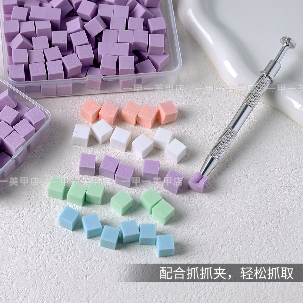 美甲拍拍胶海绵高密度豆腐块粉扑腮红渐变专用抓夹美甲店专用工具