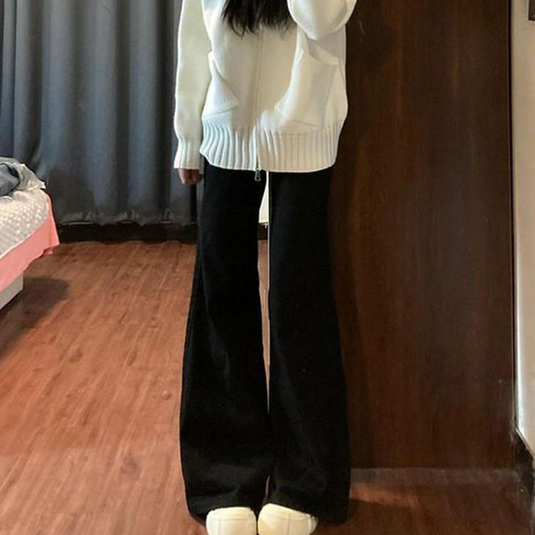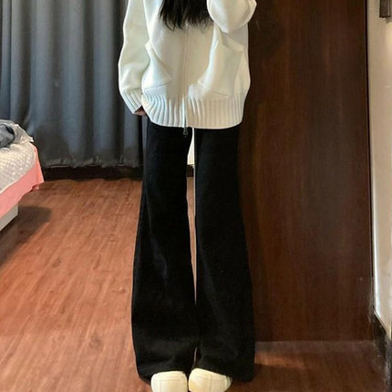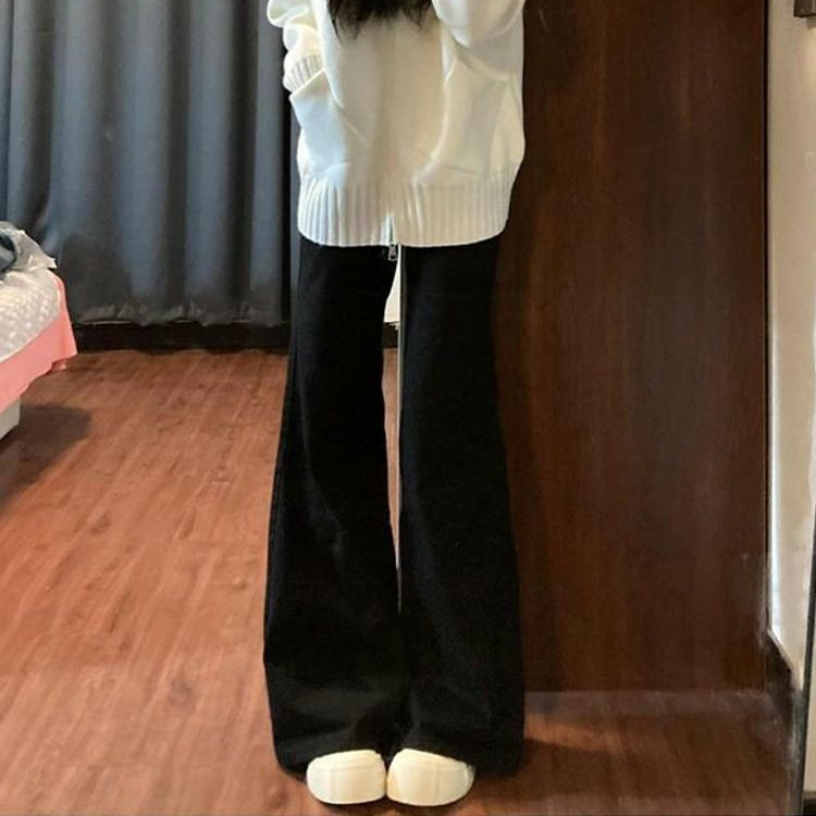 黑色不贴腿阔腿牛仔裤女2026春季韩版新款宽松显瘦不贴腿喇叭长裤