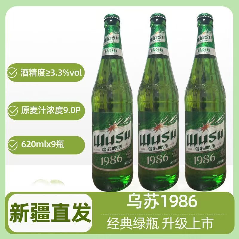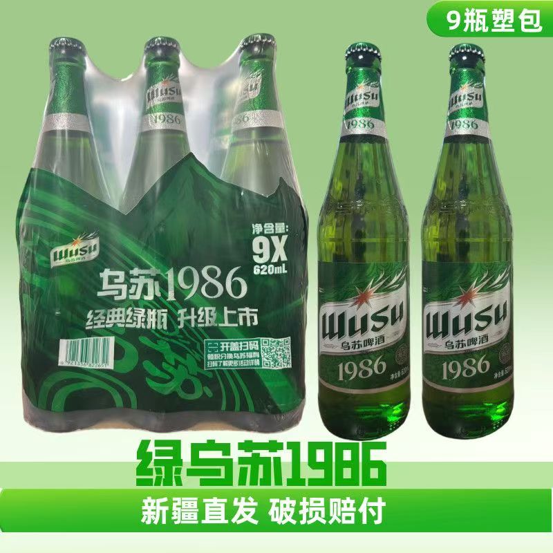 新疆本地产正宗绿乌苏啤酒620ml*9瓶9度麦芽清爽幑醺瓶装批发包损