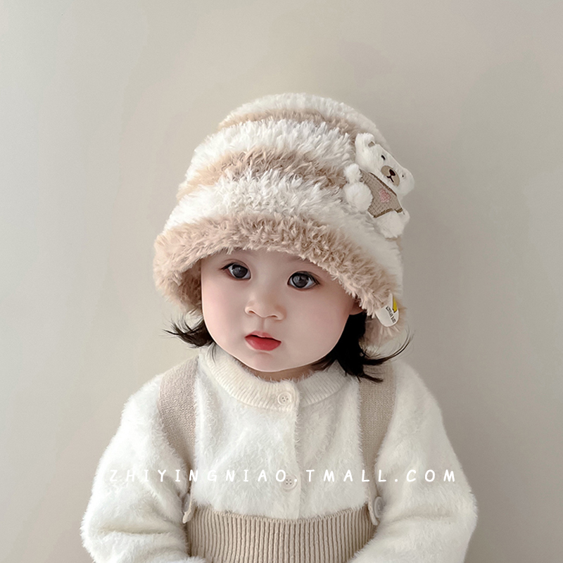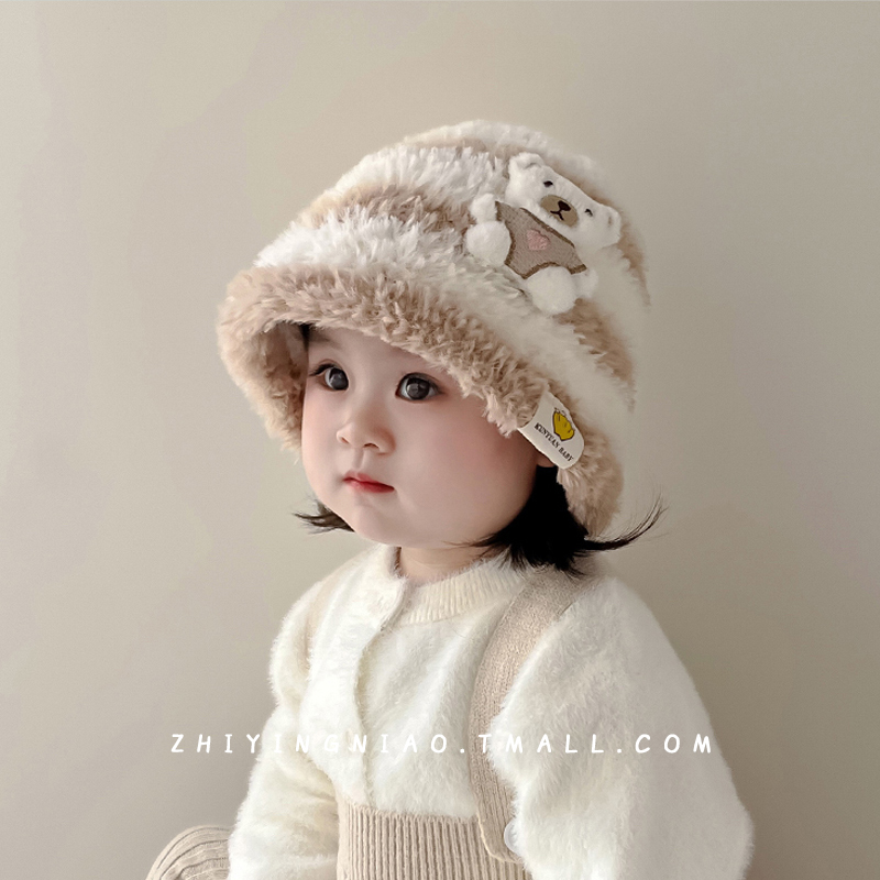 宝宝帽子秋冬季毛绒帽可爱超萌儿童盆帽加厚保暖男童女童渔夫帽潮