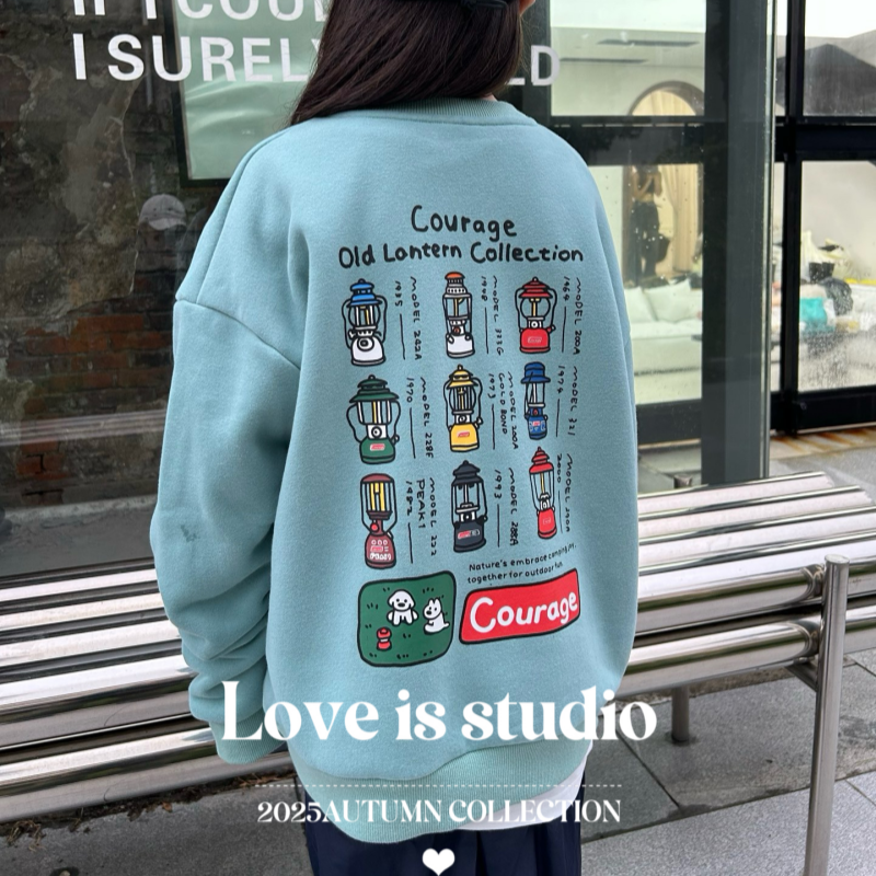 儿童加绒保暖卫衣2025山系户外秋冬装男女童插画露营油灯圆领卫衣