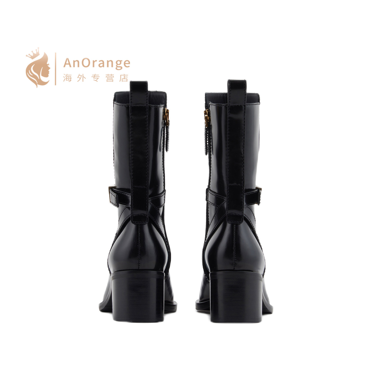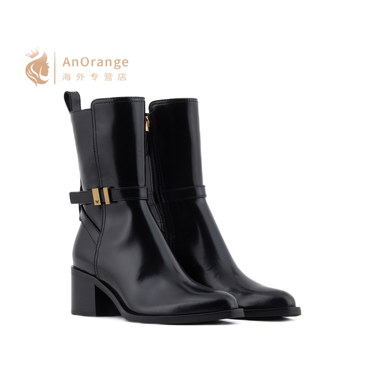 Armani阿玛尼EA女鞋2026新款黑色小牛皮侧拉链5.5cm圆头高跟踝靴
