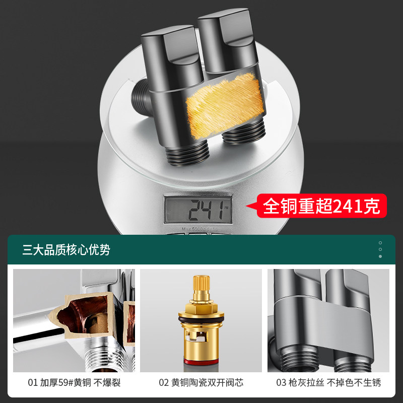 九牧王双出水洗衣机水龙头角阀一进二出专用双龙头自动止水阀接头