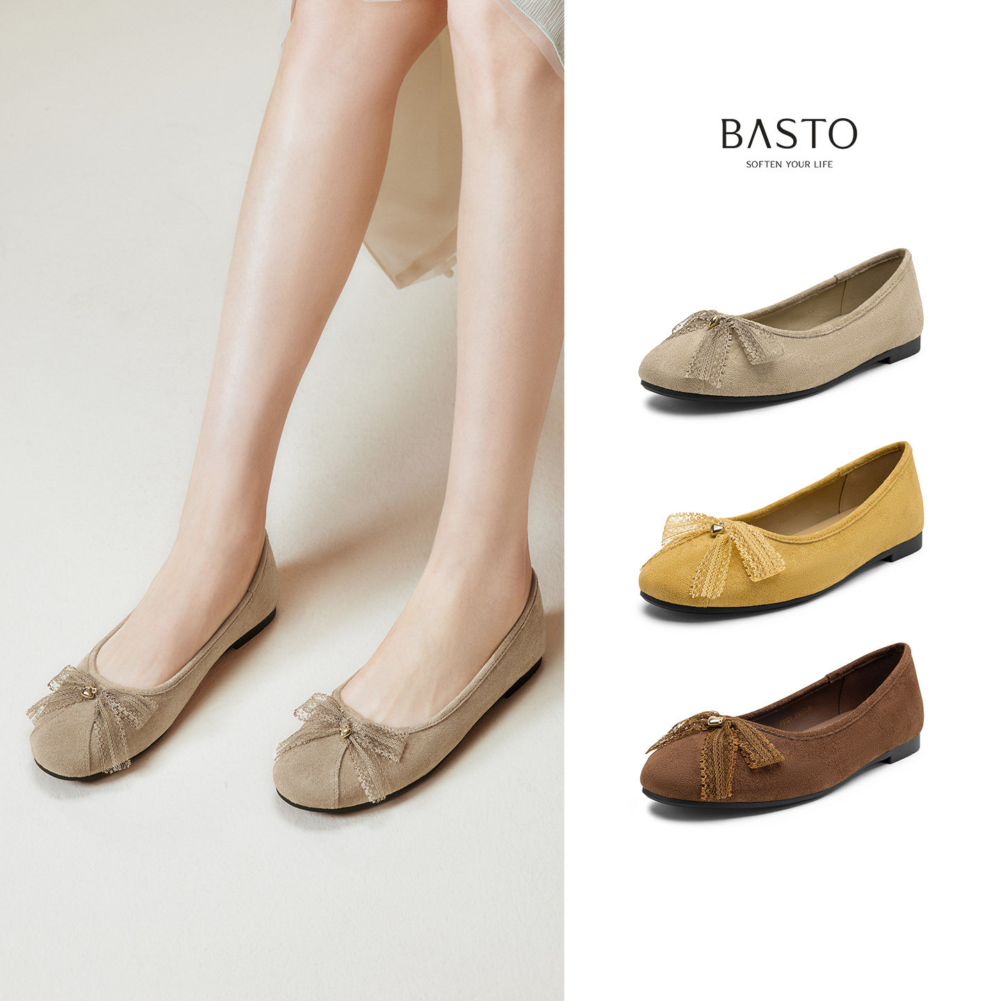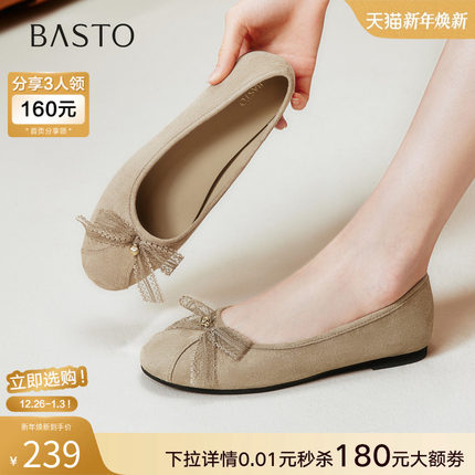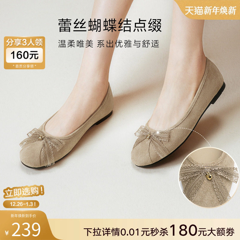 百思图2025秋季商场新款蕾丝蝴蝶结浅口单鞋一脚蹬女鞋F5121CQ5