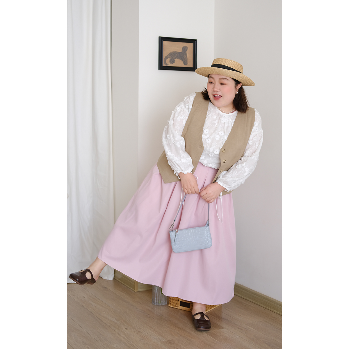 zooobaby大码女装微胖mm春夏韩系简约纯色半身裙粉色A字裙