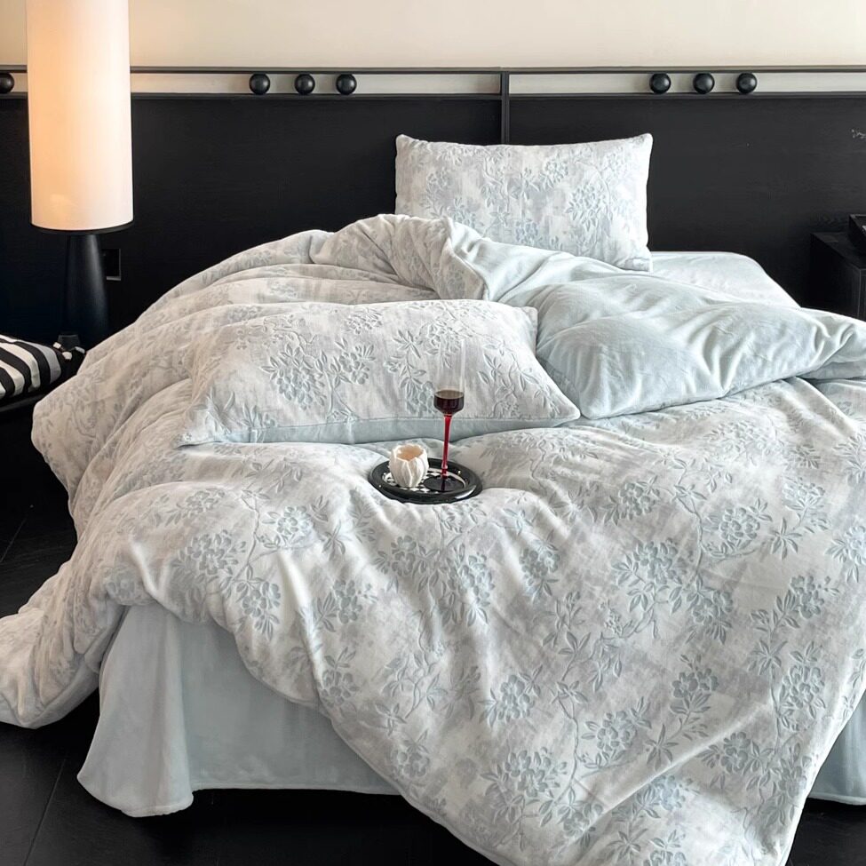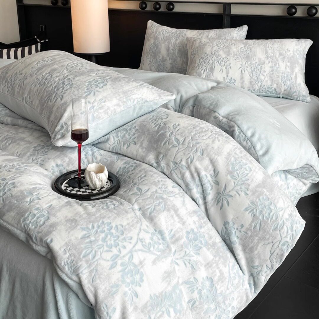 加厚牛奶绒雕花床上四件套2025款