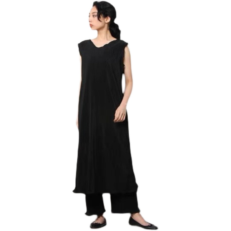 包邮日单女款长裙 褶皱无袖长裙 冰丝面料 凉感连衣裙无袖