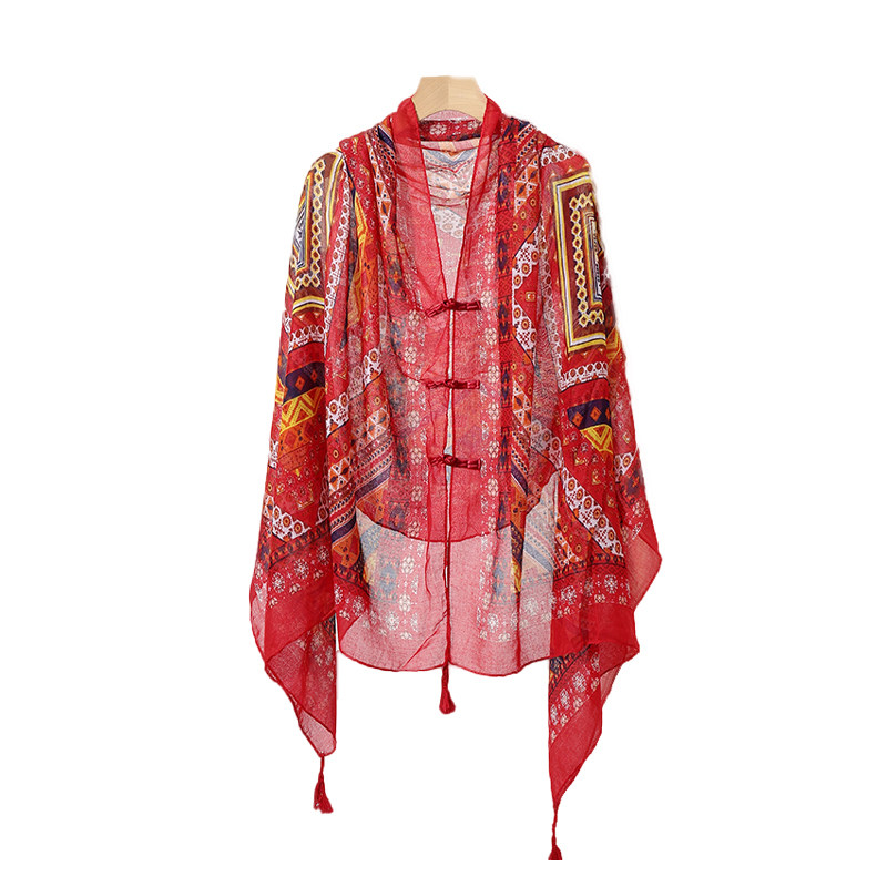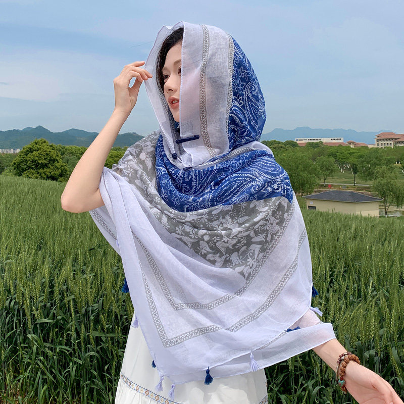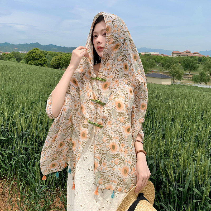 中国风浪漫盘扣清新气质春夏季出游户外遮阳丝巾披肩配裙子外搭