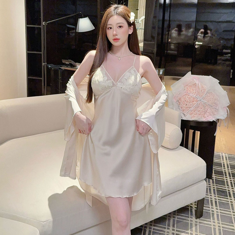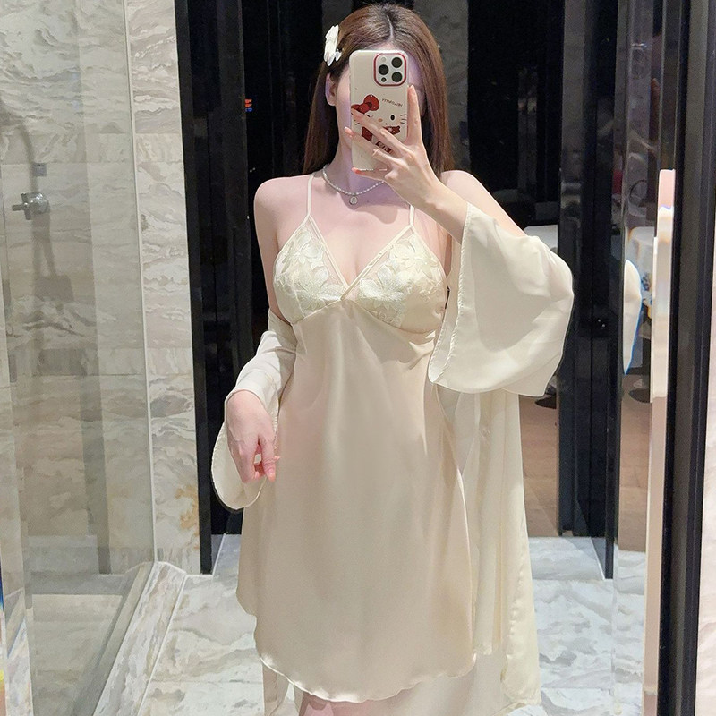新款春夏季冰丝睡衣女性感纯欲风蕾丝边吊带睡裙带胸垫睡袍家居服