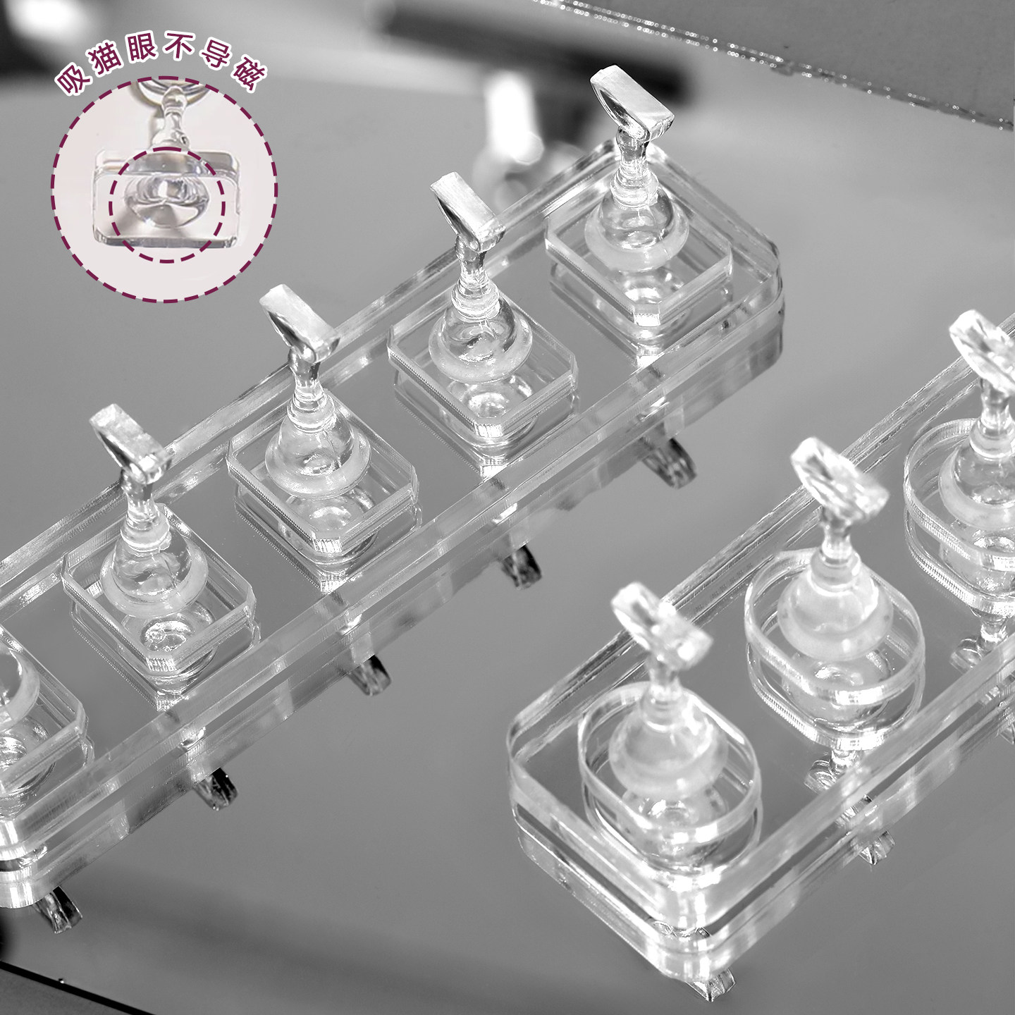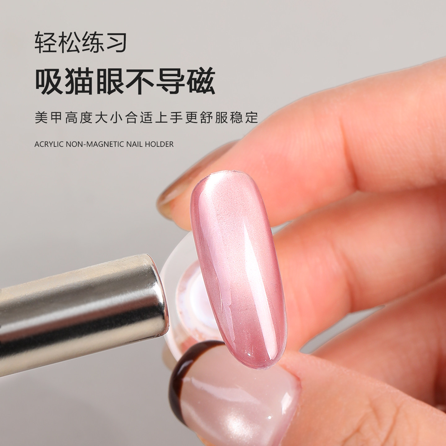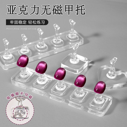 美甲无磁透明亚克力甲托练习底座可吸猫眼新手打版指甲专用工具