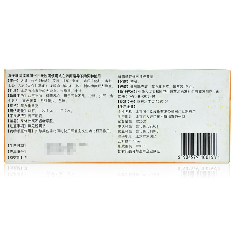 同仁堂 人参健脾丸 6g*10丸健脾祛濕调理脾胃虚弱肠胃消化养胃药