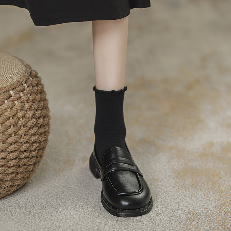 品牌真皮英伦小皮鞋女2025秋新款一脚蹬平底单鞋黑色乐福鞋豆豆鞋