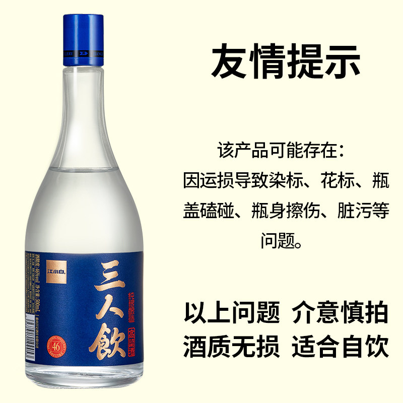 江小白白酒三人饮46度/52度500ml清香型高粱酒粮食酒瓶装白酒