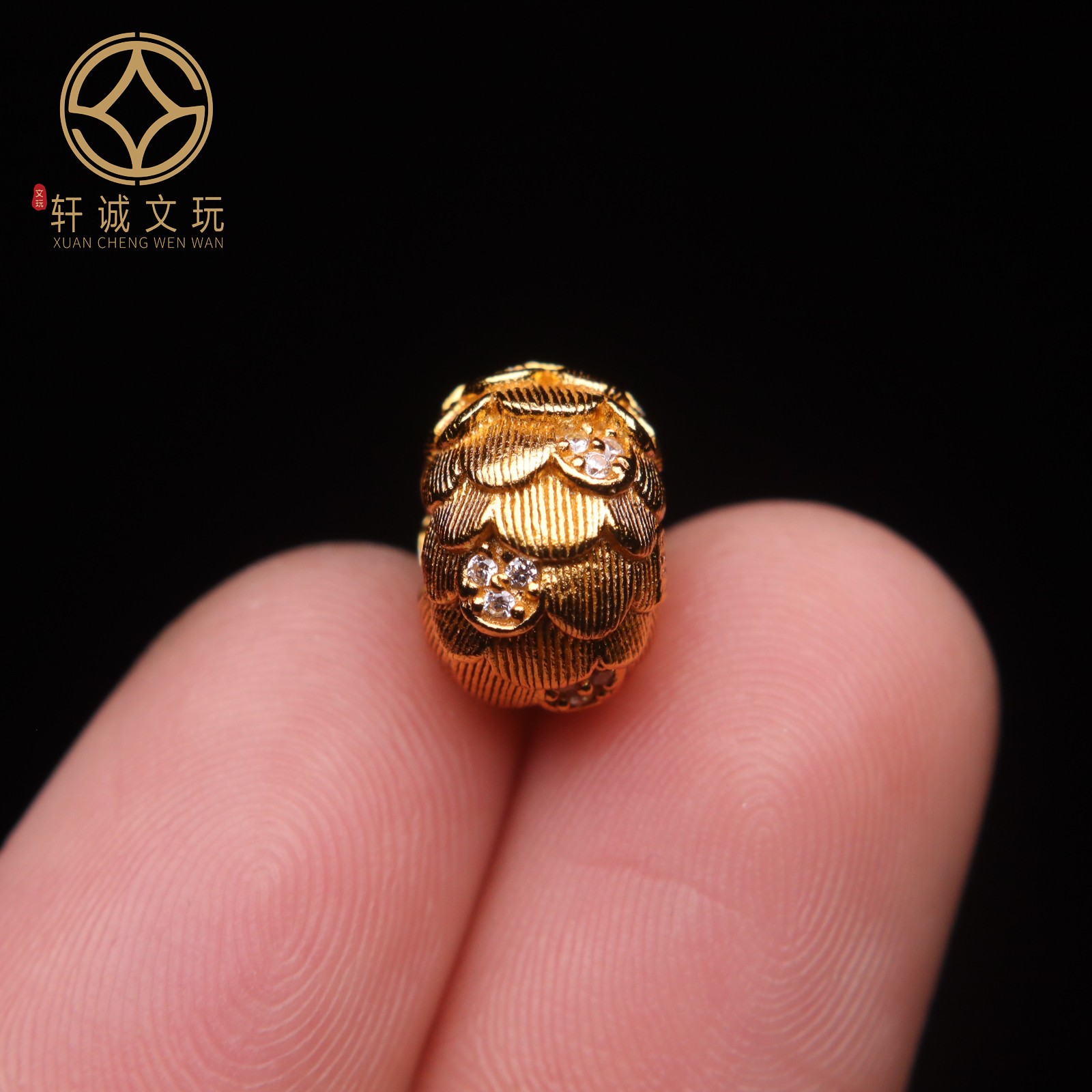 原创足银925龙鳞纹镶钻珠平安扣顶腰珠手串手工串珠diy文玩配饰