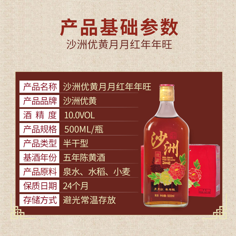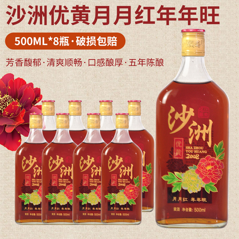 沙洲优黄系列黄酒 2008月月红年年旺 500ml*8瓶整箱包邮