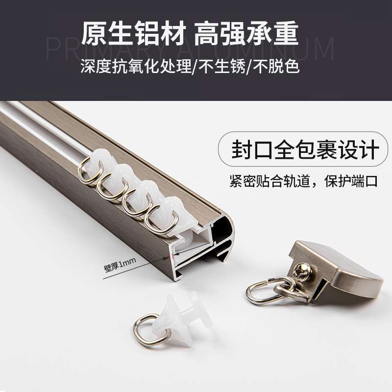高端别墅大宅窗帘轨道滑轨窗帘杆静音加厚铝合金直轨顶装侧装双轨