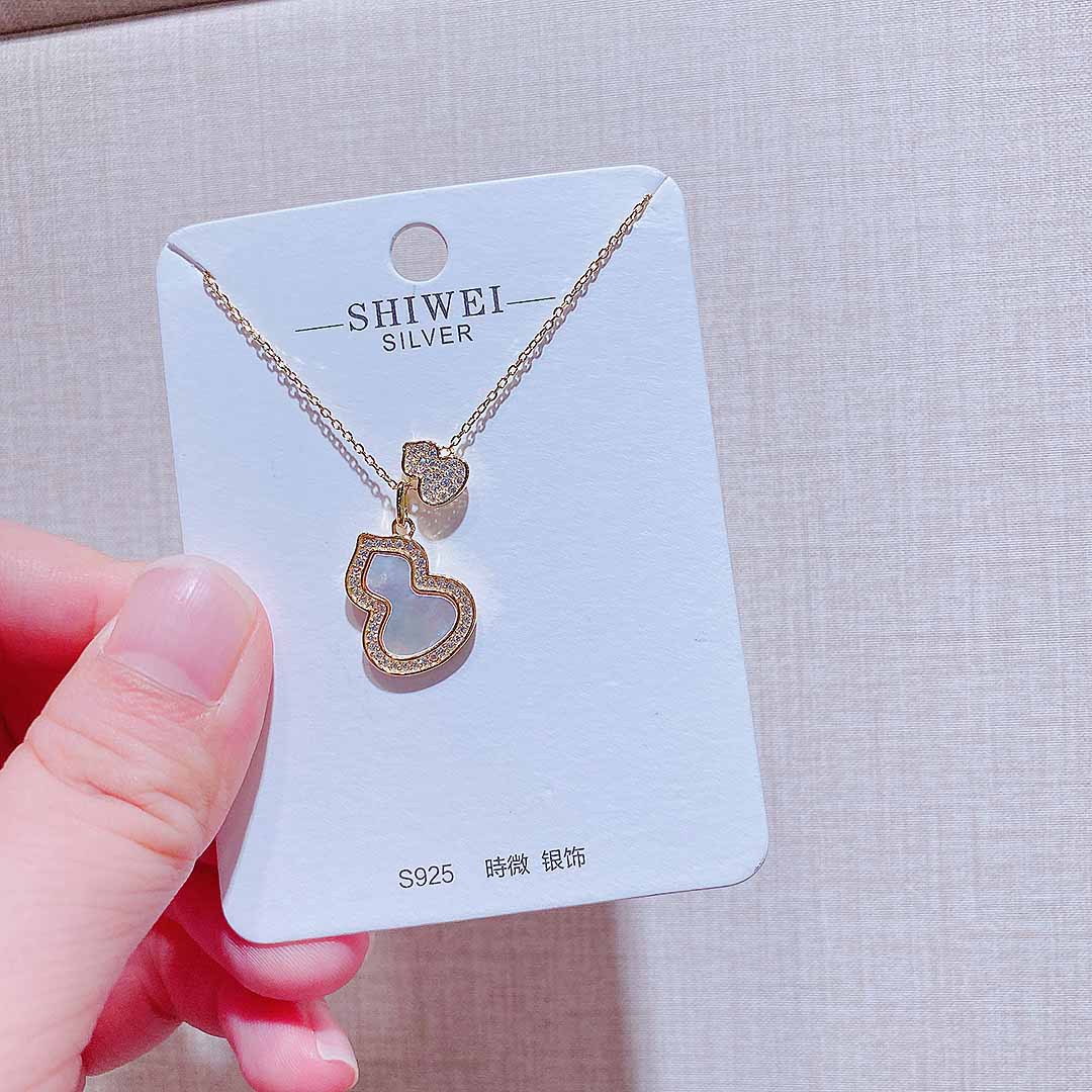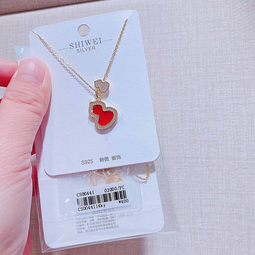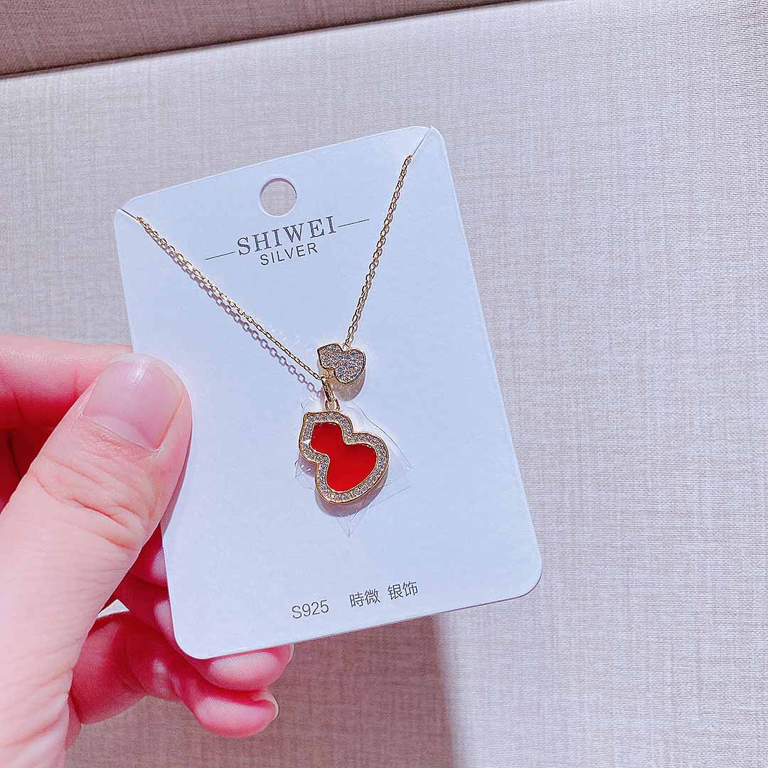 时微银饰白贝母红玛瑙葫芦通体纯银项链时尚精致个性设计感锁骨链