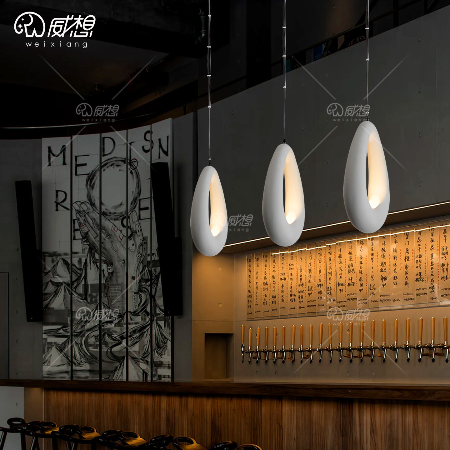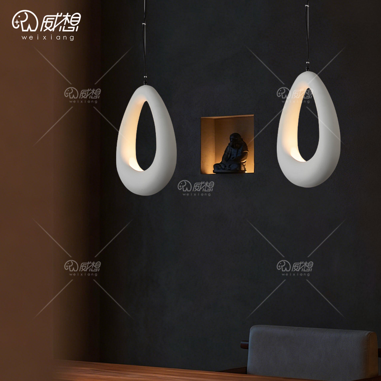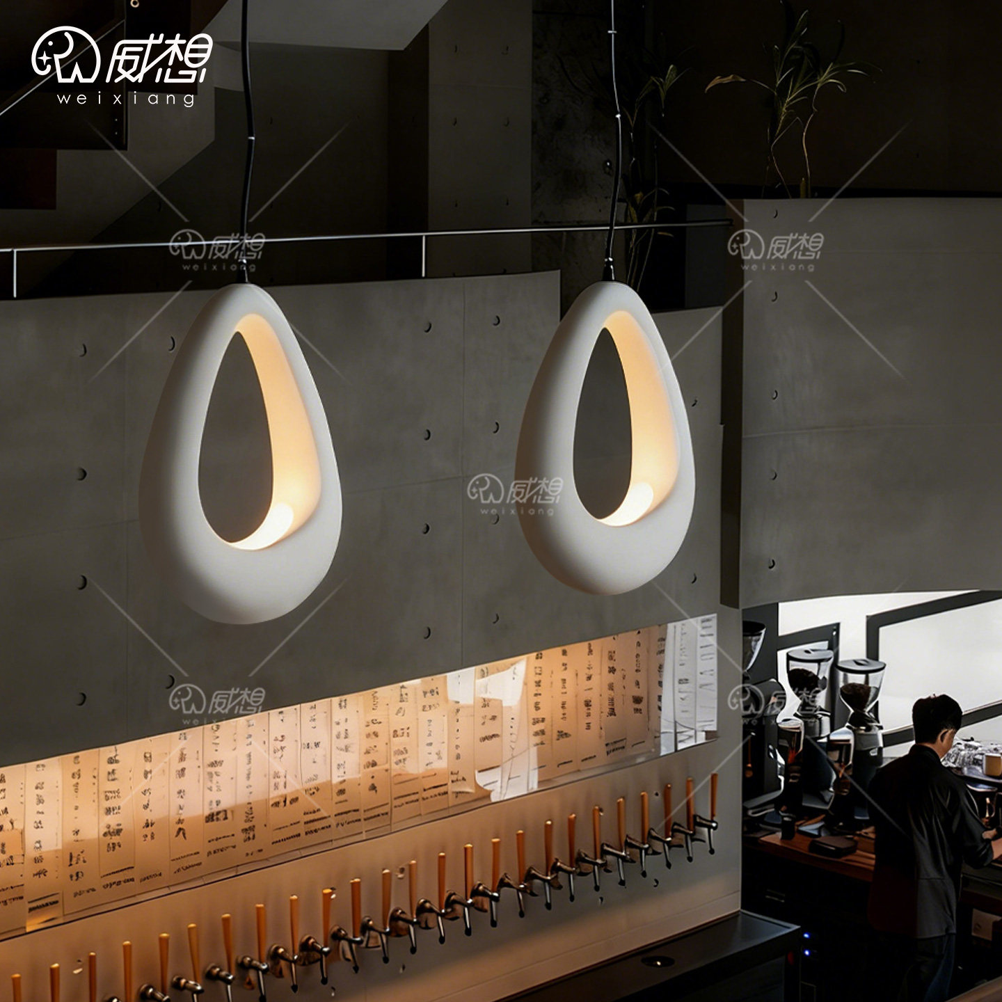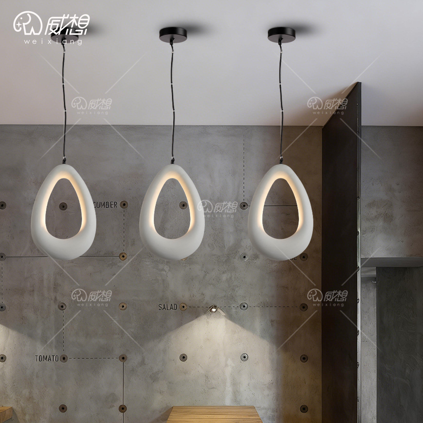 威想侘寂风微水泥餐厅吊灯