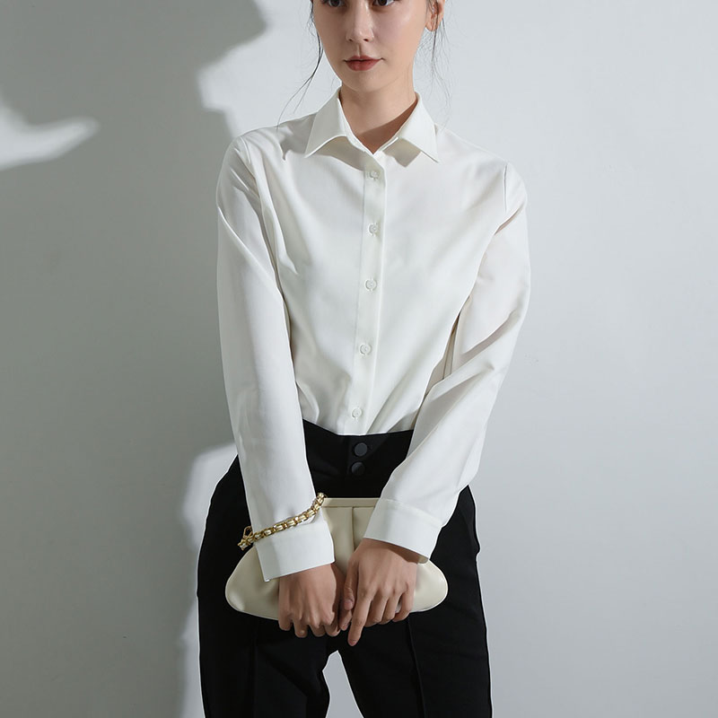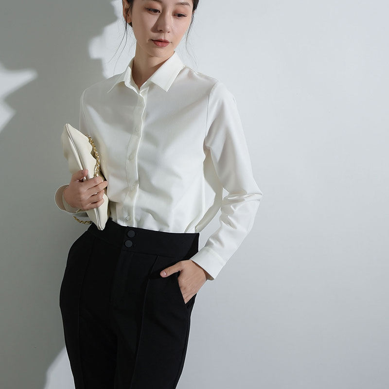 抗皱免烫叠穿白色纯棉衬衫女士慵懒风打底职业百搭弹力棉通勤衬衣