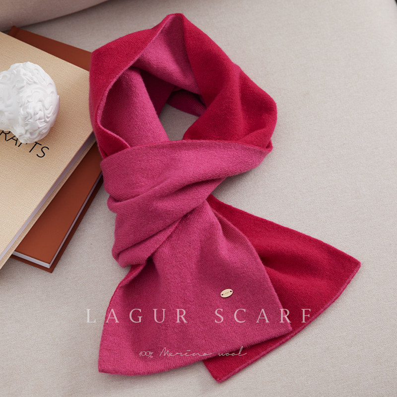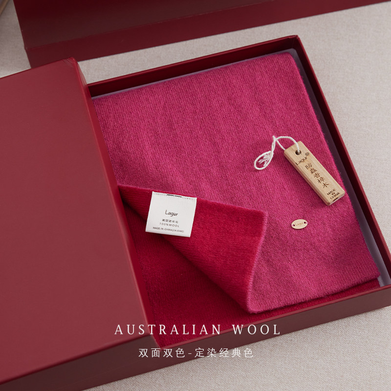「野红色」双面双色!100%美利奴加厚羊毛围巾女冬季围脖新款送礼