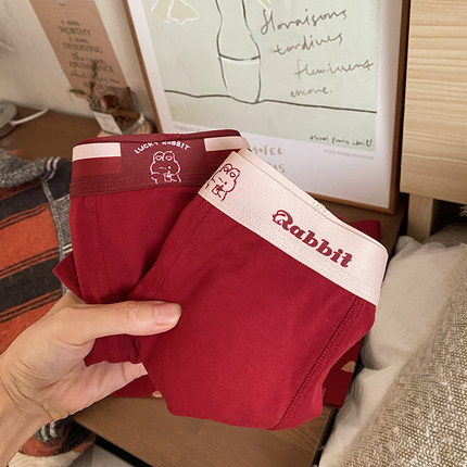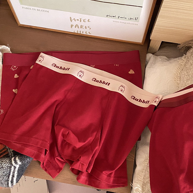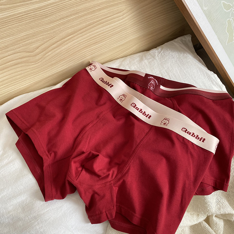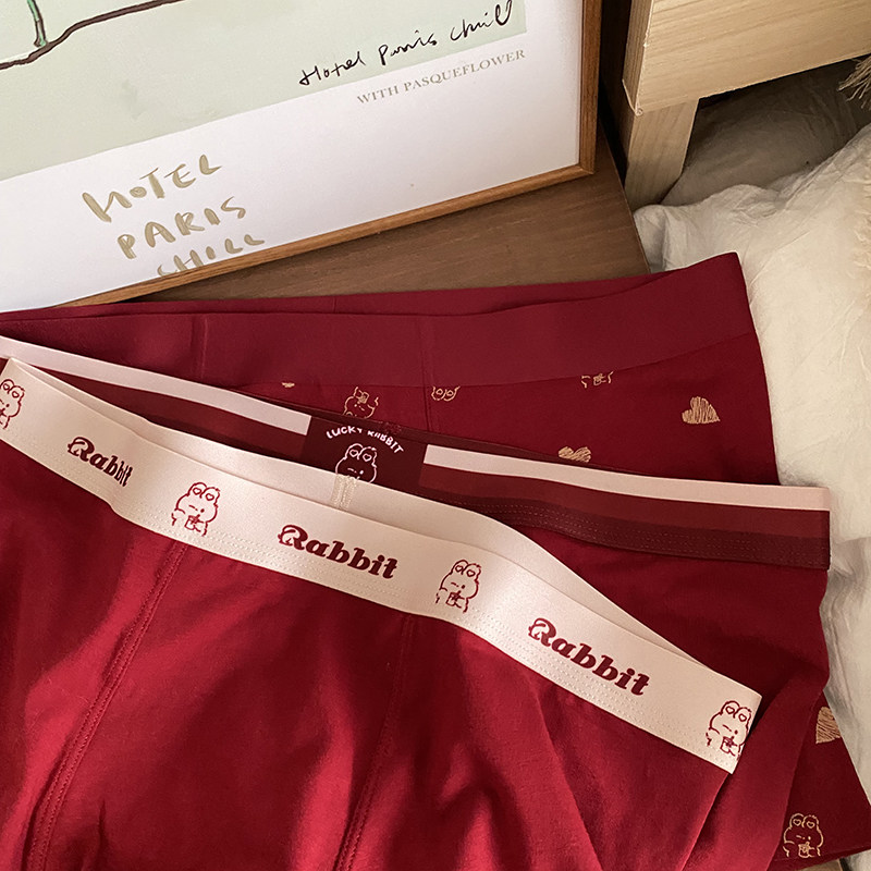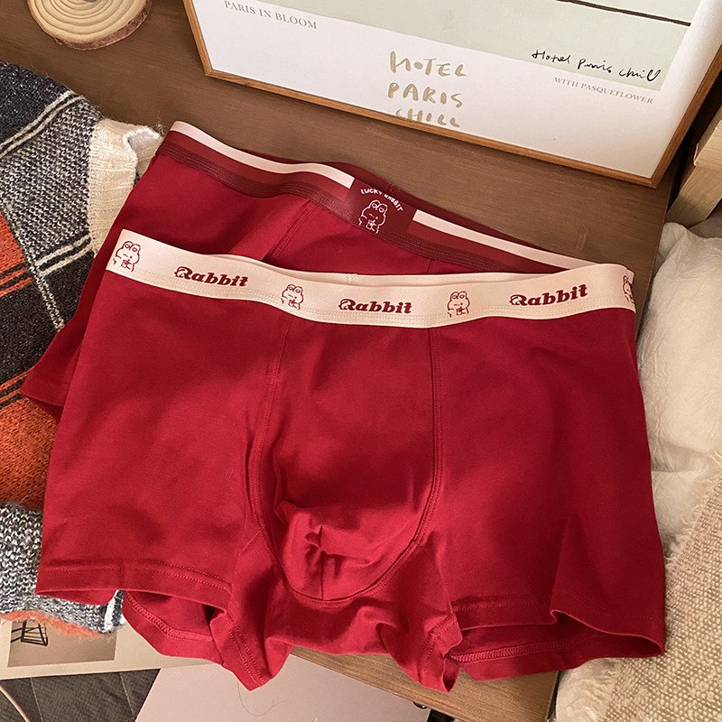 蓝色半岛兔年本命红纯棉男士内裤舒适透气结婚新年幸运红平角短裤