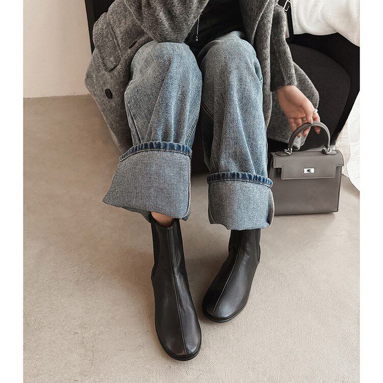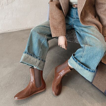 头层牛皮复古短筒切尔西靴圆头内增高秋冬新款时尚短靴真皮瘦瘦靴
