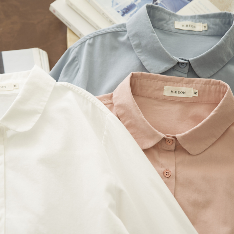 云水间 秋季新款宽松娃娃领白衬衫女设计感小众长袖打底学生衬衣