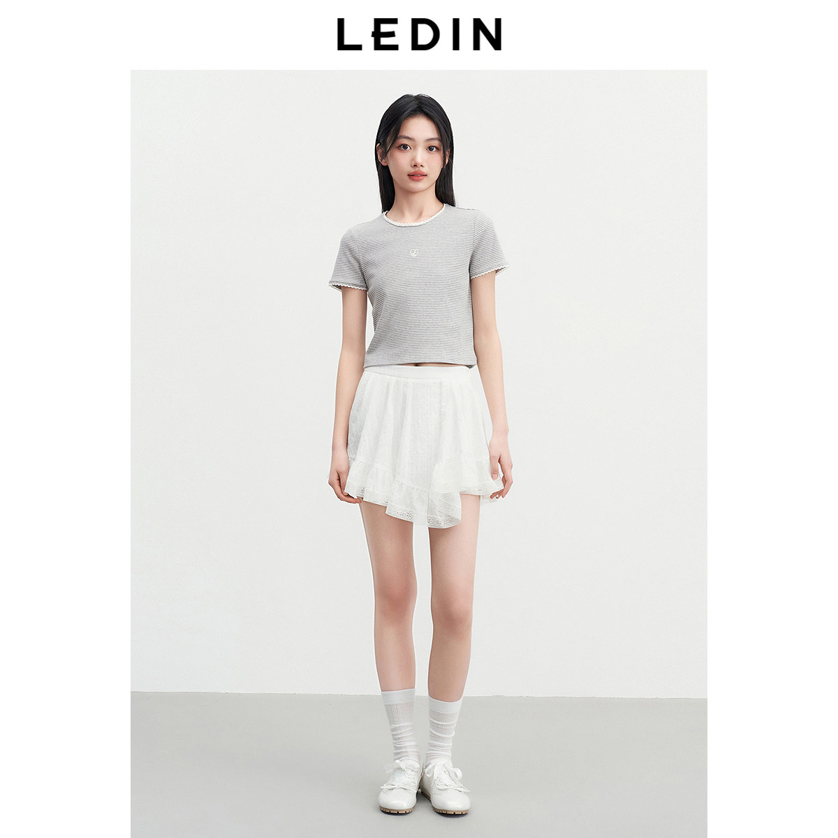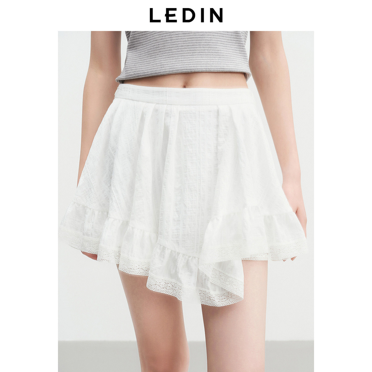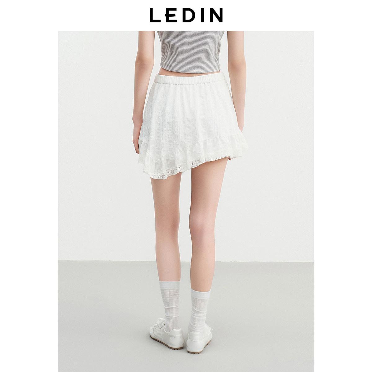 乐町不对称设计白色短裙25年夏季新款防走光半身裙拼接蕾丝A字裙