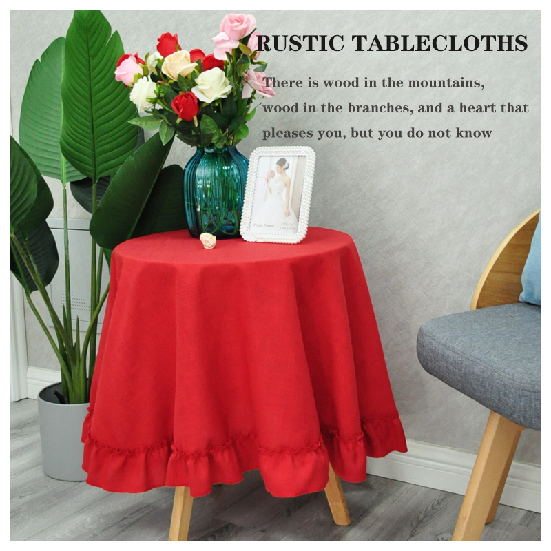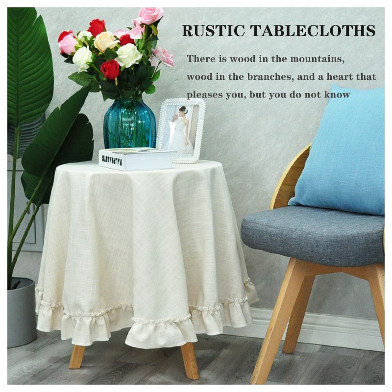 ins网红亚麻棉麻荷叶边桌布白纯色花边拍摄客厅茶几布圆餐桌台布