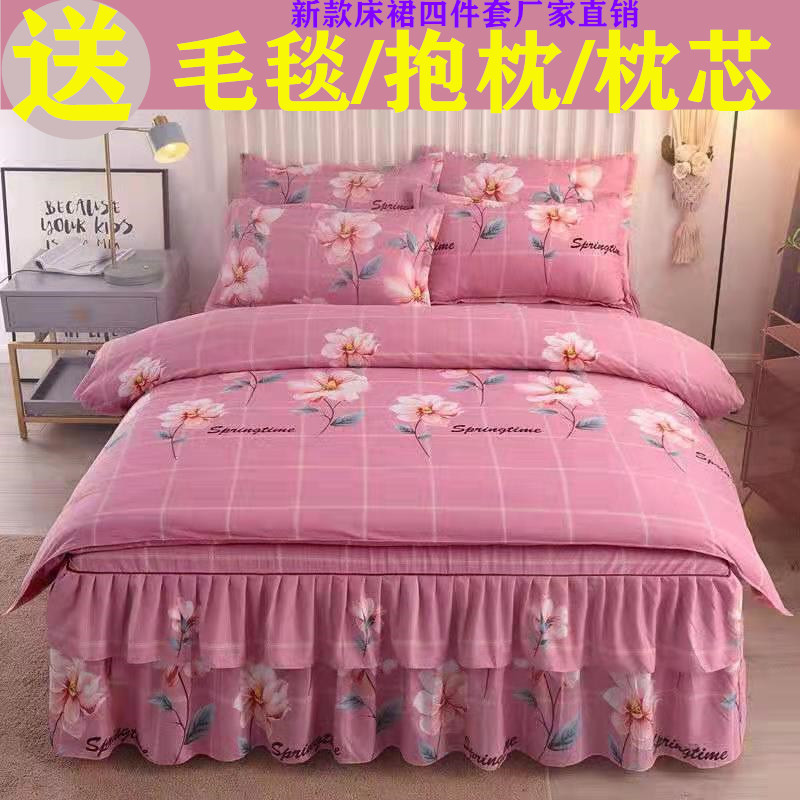 加厚全棉磨毛床裙四件套防滑床罩被套韩版婚庆双人床上用品