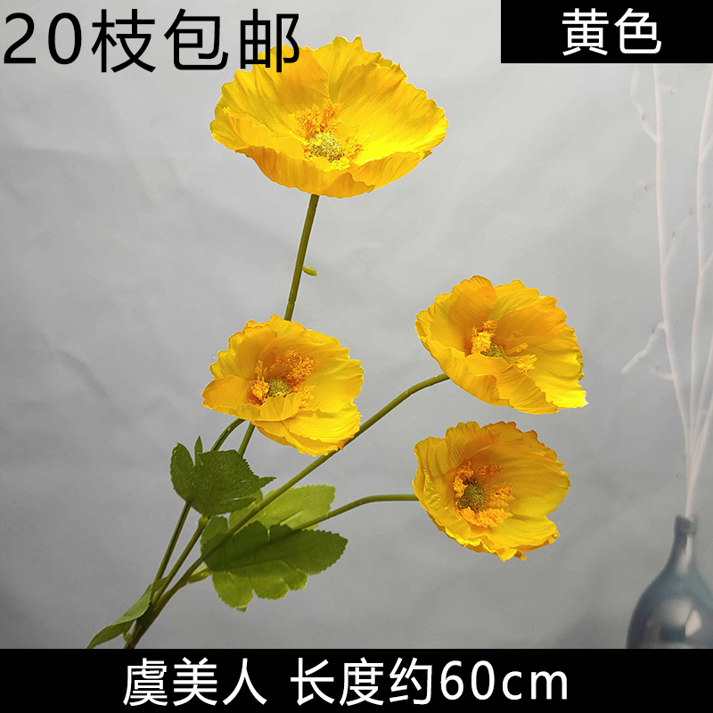 厂家直销四头虞美人仿真花罂粟花假花婚庆花艺婚礼布置地排花插花