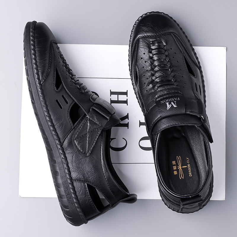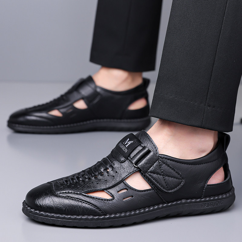 凉鞋男2025新款夏季真皮透气软底软面男士休闲镂空百搭洞洞凉皮鞋