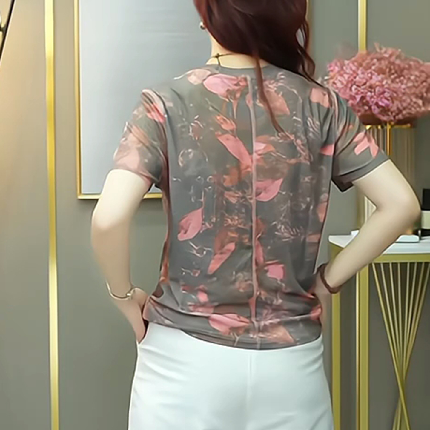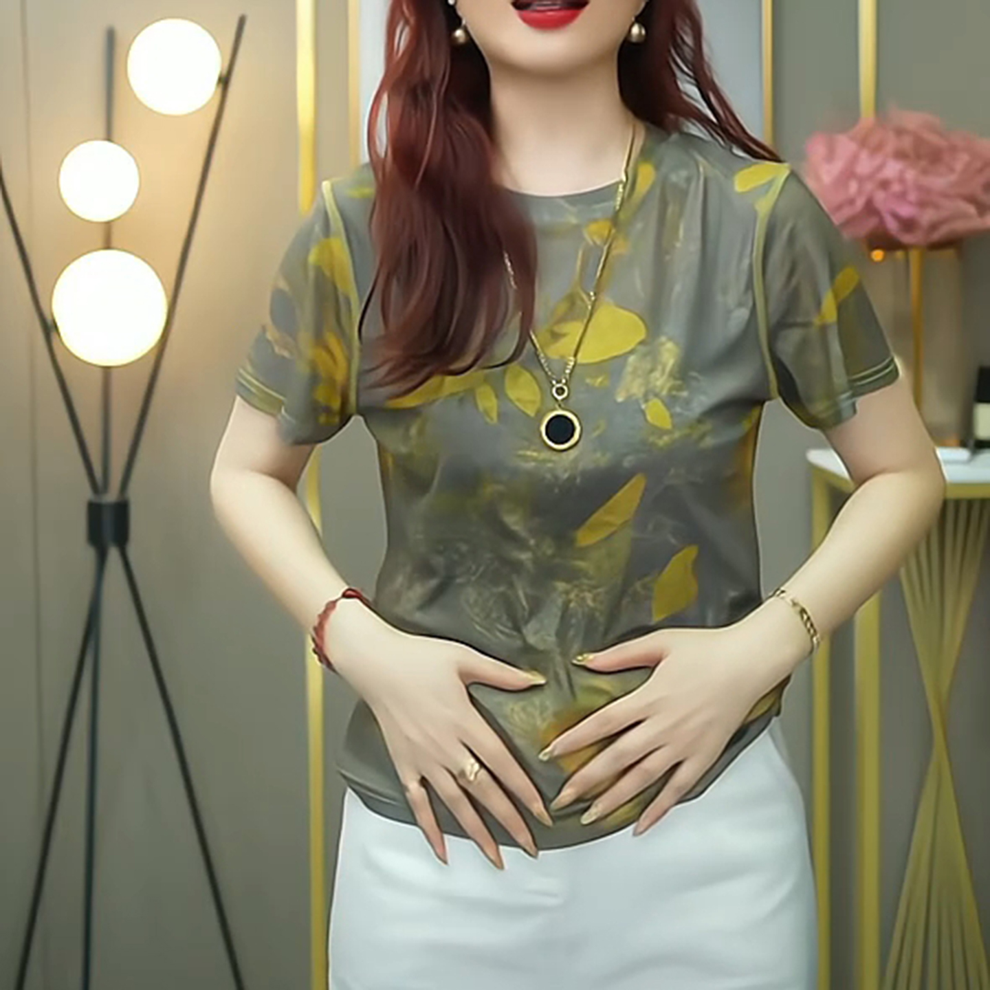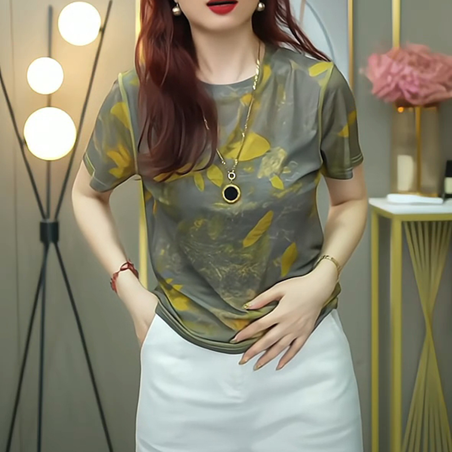 涂鸦印花薄款弹力短袖T恤女2025春夏新款显瘦时尚设计感百搭上衣