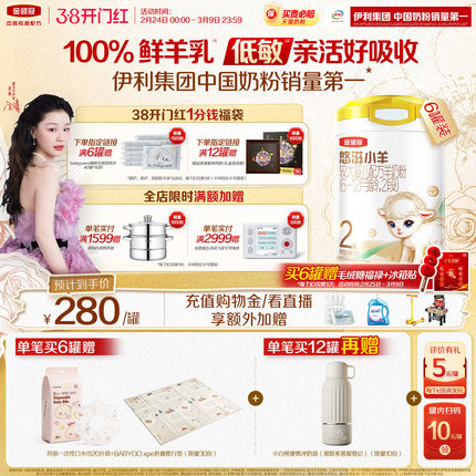 伊利金领冠悠滋小羊2段低敏6-12个月婴幼儿羊奶粉700g*6罐