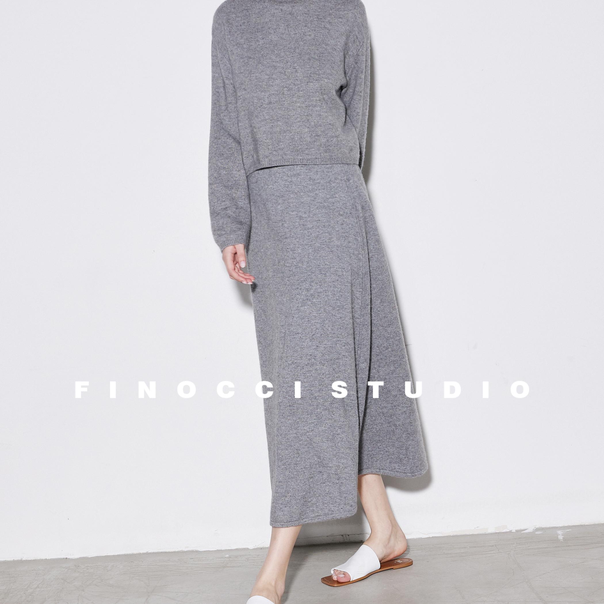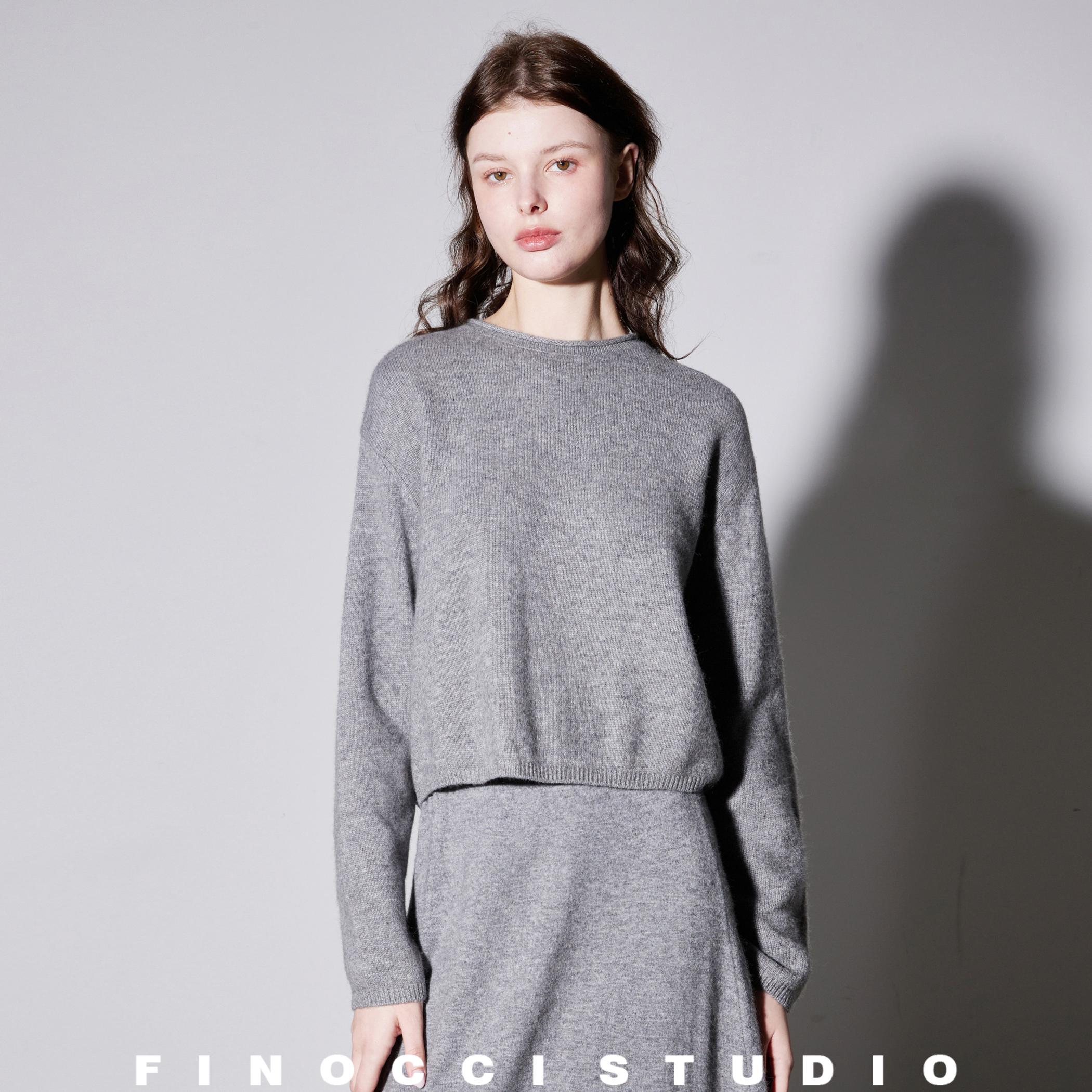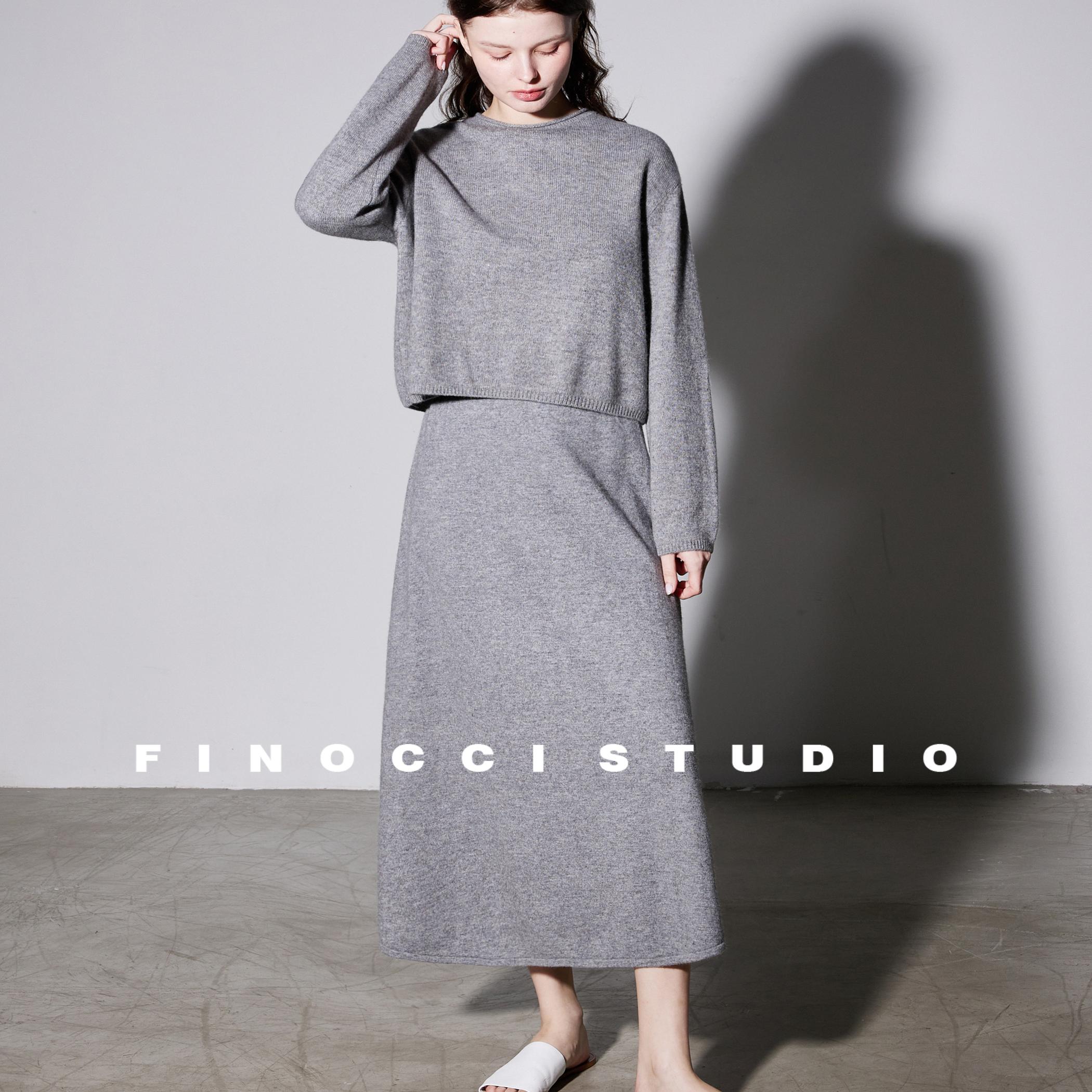 FINOCCI 高级感BI入百搭不会出错绵羊毛浣熊绒圆领毛衣半裙套装