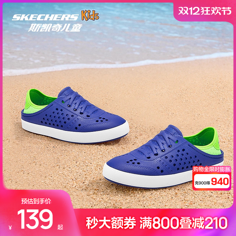 斯凯奇outlets童鞋夏季男中大童一脚蹬沙滩鞋凉鞋轻便儿童洞洞鞋