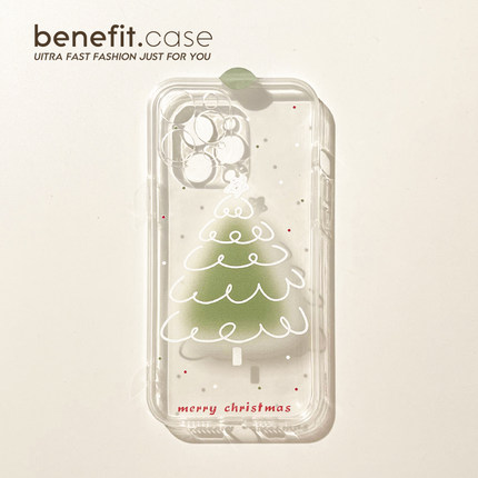 Benefit创意ins渐变圣诞树17pro16适用15苹果13手机壳iphone14promax新款12保护套11卡通xsmax透明xr硅胶8p7
