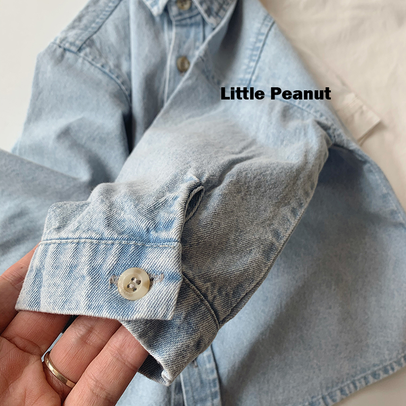 自造 做旧水洗纯棉牛仔衬衫白上衣外套 男宝女宝中性童装春秋
